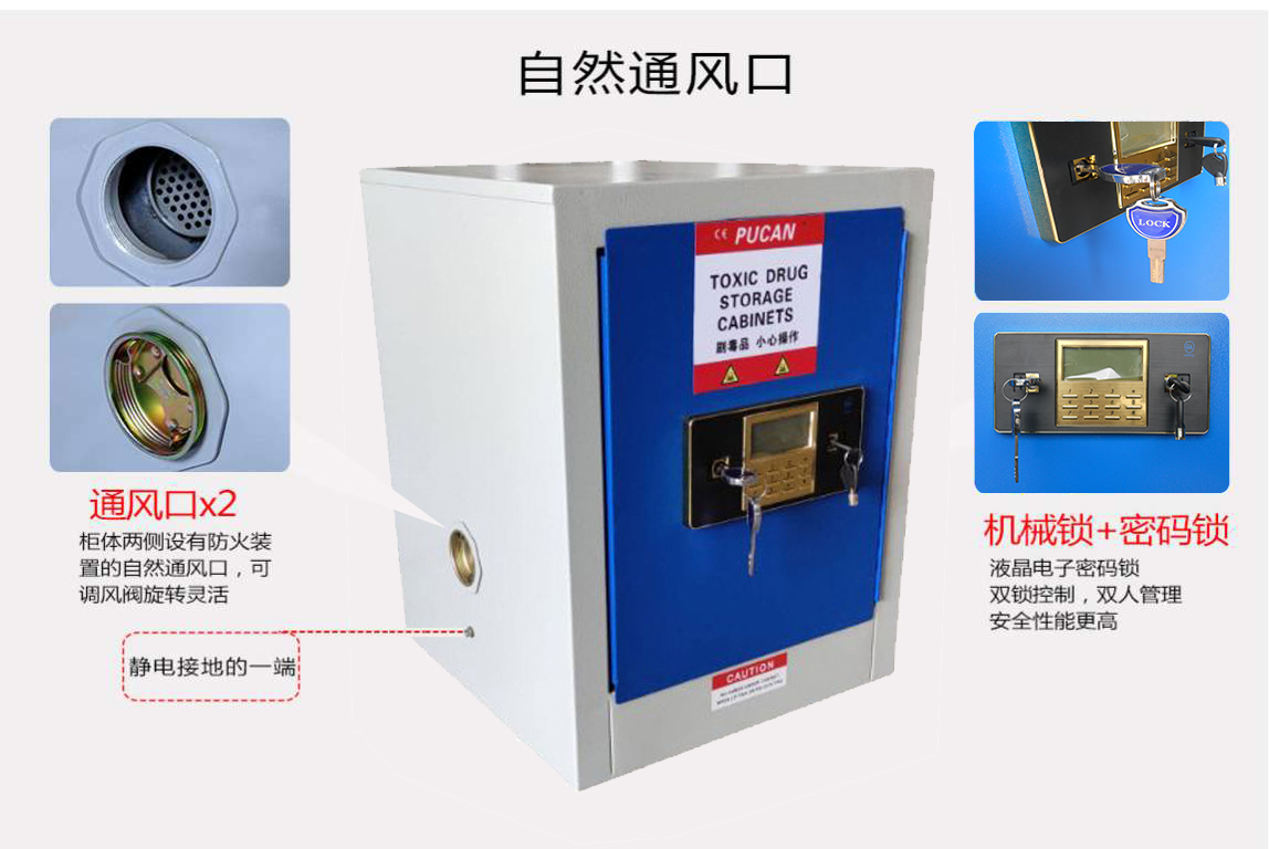 層板:為優(yōu)質(zhì)鍍鋅層板; 涂層:磷酸鈍化處理,環(huán)氧樹脂靜電噴涂; 規(guī)格:單門,手動,液晶密碼鎖+機械鎖。雙人雙鎖